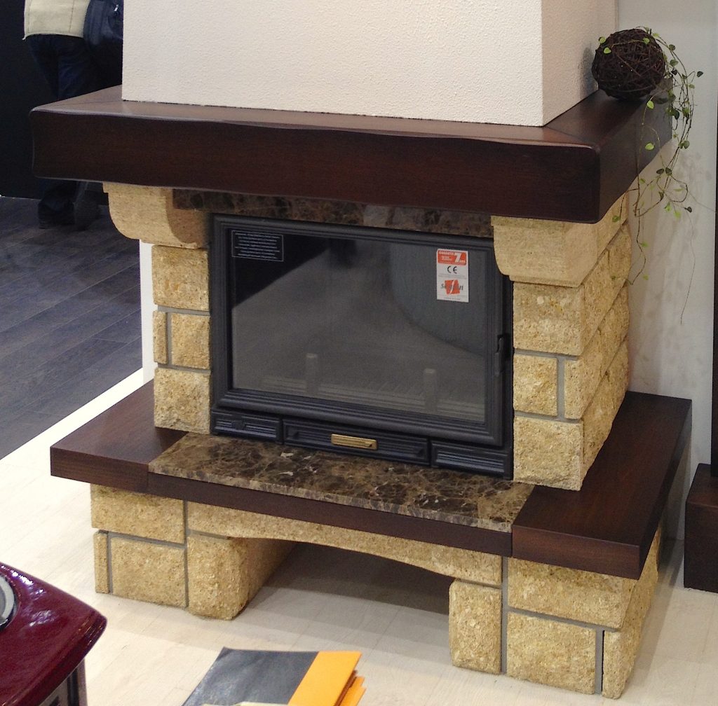 2. Модель с полкой из дуба с красным печным кирпичом из желтого французского песчаника Dordogne (дордонь) ;