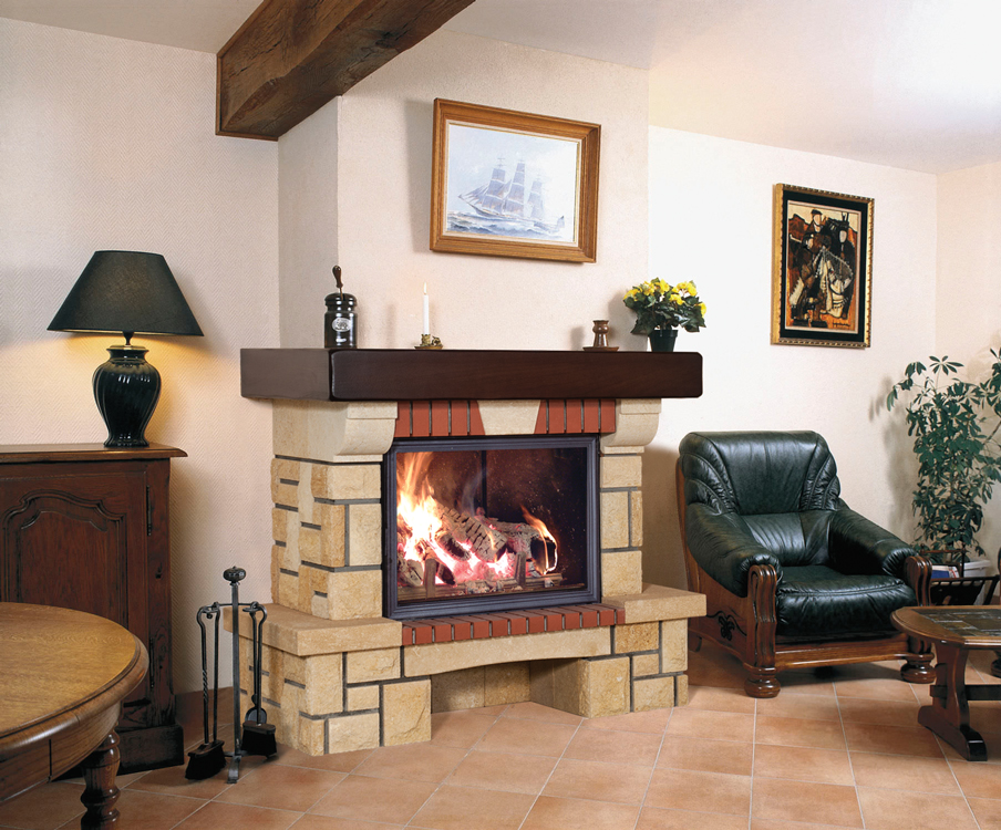 1. Модель с полкой из дуба с красным печным кирпичом из желтого французского песчаника Du Gard (гард);