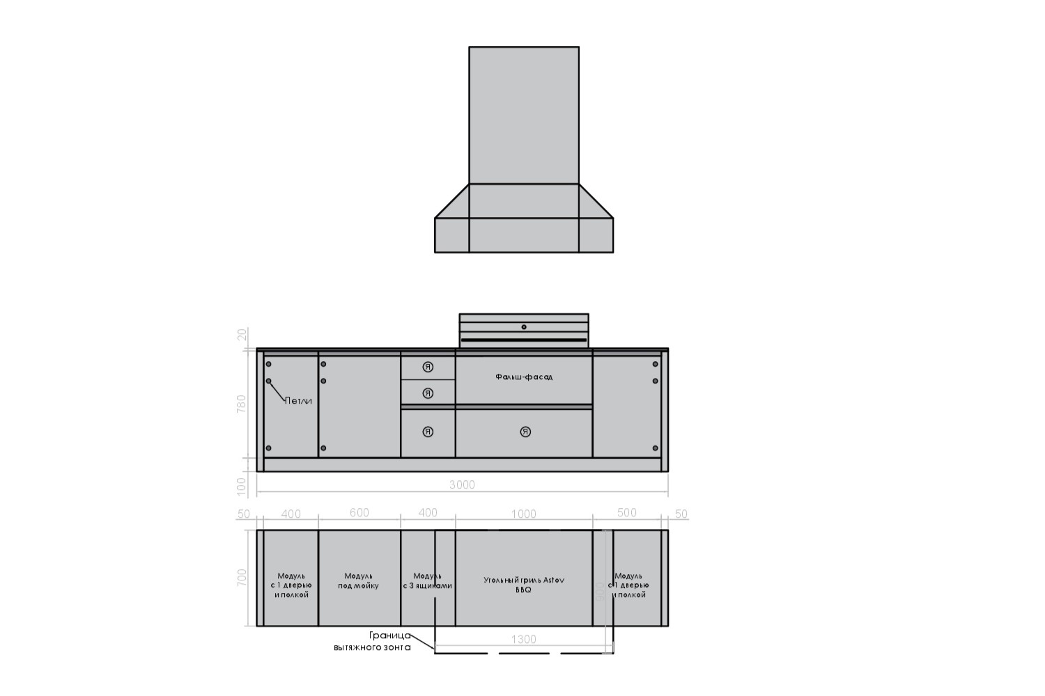 Кухня Astov BBQ № 1 (ширина 3000 мм) (готовое решение)